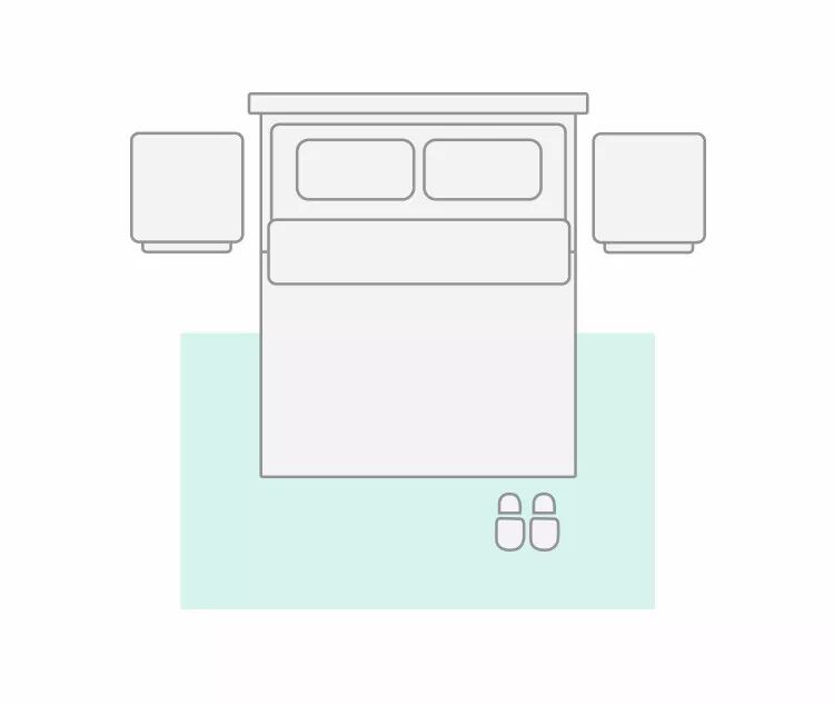 地毯寬度建議略寬過(guò)床頭柜,長(cháng)度與床等長(cháng)或略長(cháng)些均可。