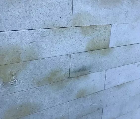 簡(jiǎn)析:根據和黃總的溝通,了解到這些磚后面是用膠粘接而成的。經(jīng)過(guò)一段時(shí)間之后,表面出現了這種污染。