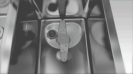 從這些噴淋孔中噴射的水柱形成了環(huán)幕式的強勁水流,達到槽體內任一高度的截面中,均有水柱均勻噴射,從而確保洗碗機腔體內合理擺放的餐具角角落落都能被沖刷到。