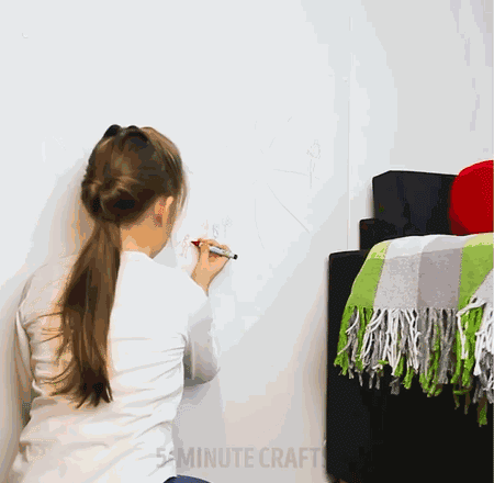 借助一個(gè)吹風(fēng)機,對著(zhù)墻上吹熱風(fēng),軟化彩蠟后,用干毛巾擦一擦,痕跡立馬消失不見(jiàn)!