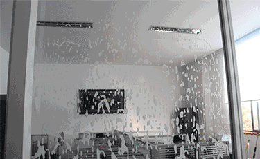 2)再用涂水器沾稀釋后的玻璃水溶液,均勻的從上到下涂抹玻璃
