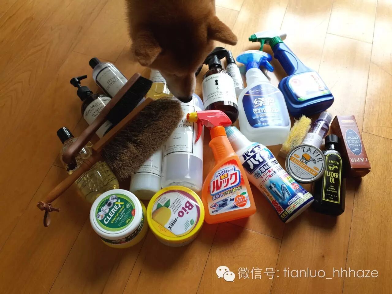 題圖是一只愛(ài)管閑事的狗,和(一部分)我們家正在用的家居清潔用品。再貼一次以饗觀(guān)眾: