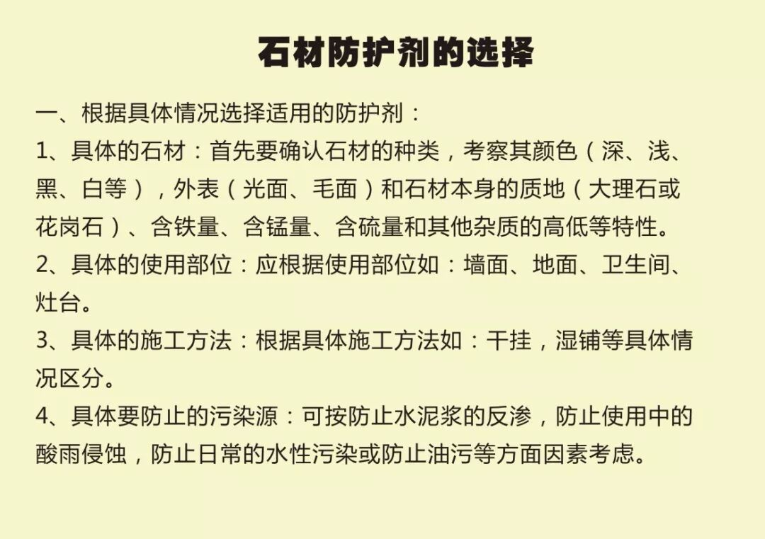 一、 石材防護的選擇要看具體的石材品類(lèi)。