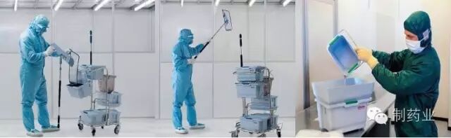 推崇的清潔為預浸漬一步清潔概念:即顆粒/ 灰塵移除的同時(shí)做到表面清潔和涂抹消毒劑。為了達到這種一步清潔目的,研發(fā)出一種可以100% 反復使用的超細滌綸纖維拖把,這種拖把可以耐受200 次以上專(zhuān)業(yè)洗衣機高溫高壓洗滌,同時(shí)可以耐受濕熱滅菌(121℃,20 min)80 次以上。傳統潔凈室拖把為了達到低顆粒釋放特性普遍使用如潔凈服通常使用的滌綸面料,而在歐洲使用特殊超細纖維面料,這種超細纖維面料除了具有非常優(yōu)秀的低顆粒釋放特性,還具備超強的吸水特性和顆粒移除性能,真正達到清潔目的。