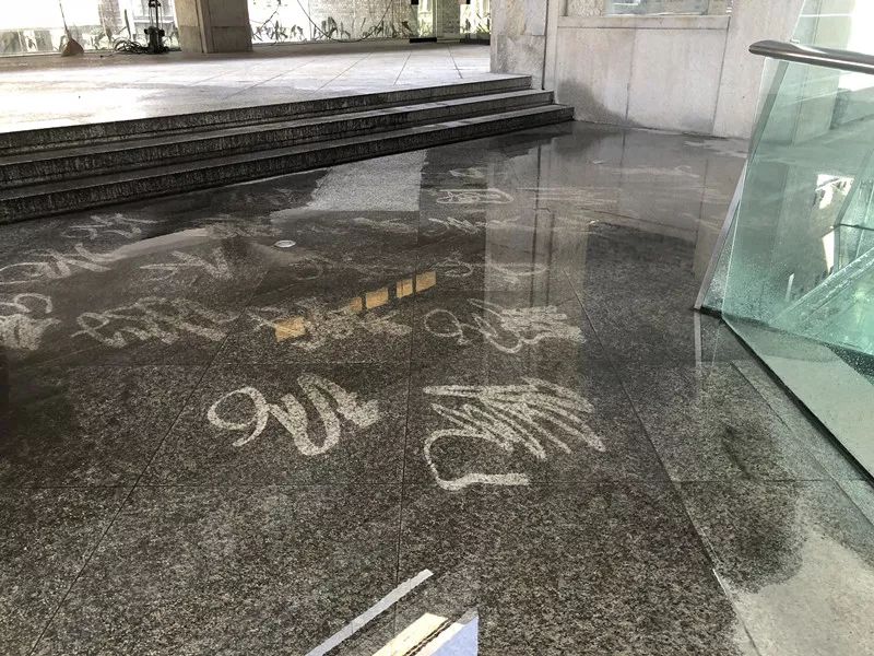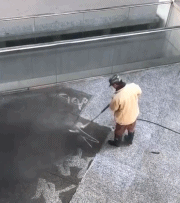 就開(kāi)始用水管槍在上面寫(xiě)字