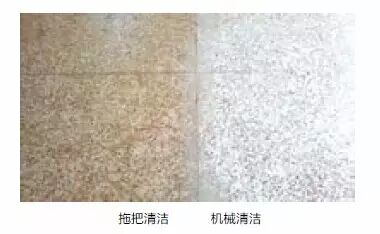 如果通過(guò)保潔機械則能很好地解決這類(lèi)問(wèn)題。下面是一張拖把清潔和機械清潔的對比圖,同一塊地面,使用拖把進(jìn)行清潔后仍然發(fā)暗、發(fā)黃;僅用機器清潔一分鐘左右,地面就能顯露本來(lái)的顏色。兩種方式的保潔效果差距是很大的。