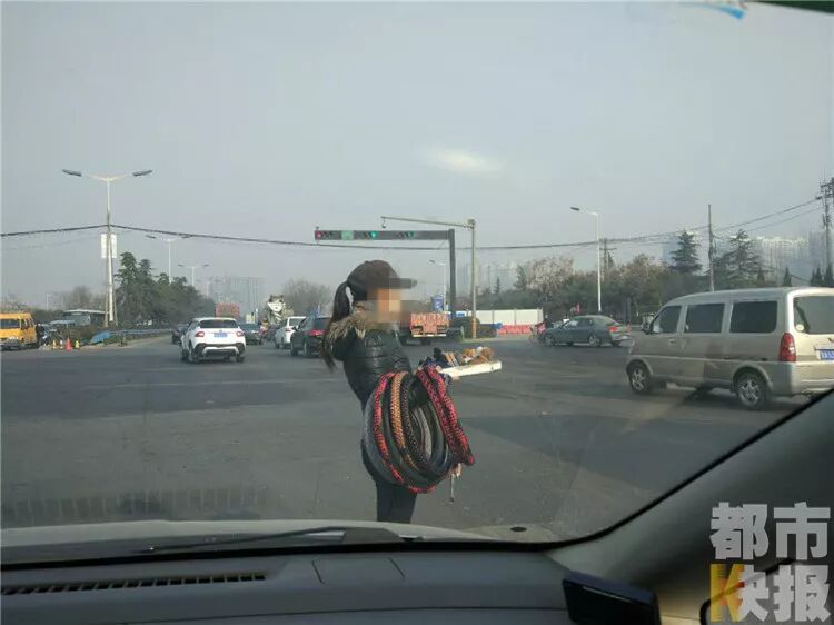 西安市西三環(huán)和阿房一路的十字因為車(chē)流量大,行車(chē)緩慢,在司機朋友們等紅綠燈時(shí)候,這里就變成了一個(gè)“大賣(mài)場(chǎng)”,有人在道路上不顧危險售賣(mài)東西。
