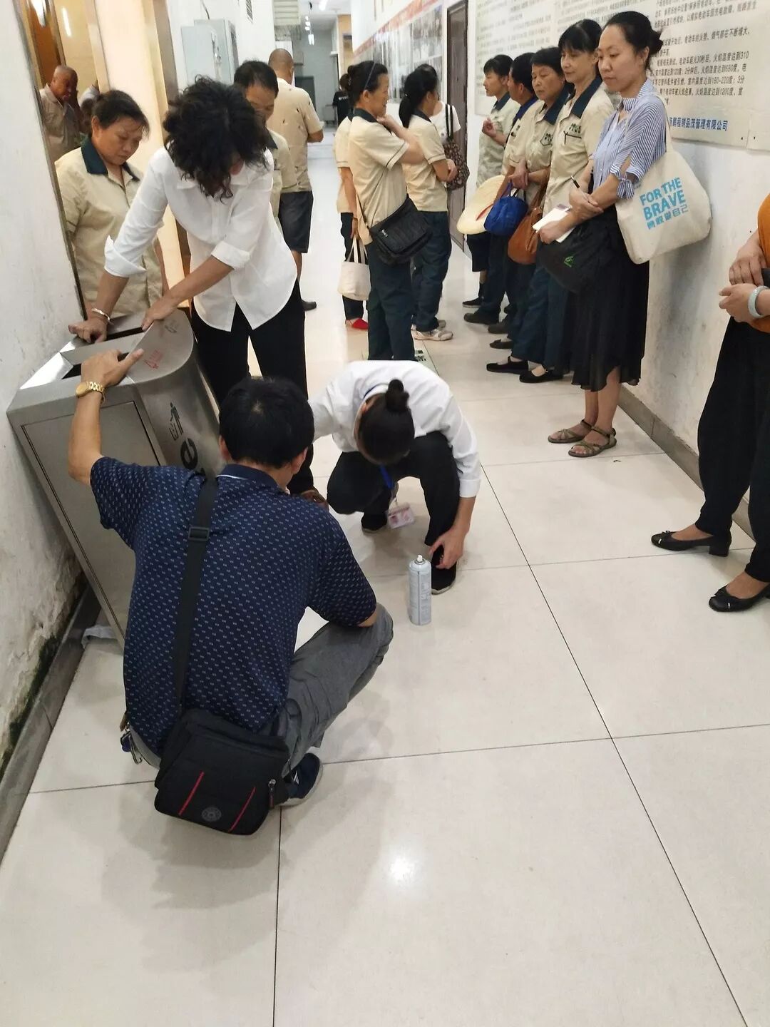 衛生間清潔主要是要細心,每個(gè)溝槽、縫隙都是容易藏污納垢的地方。小便池出水口、蹲位縫隙、隔尿片下方都是容易清潔不到位的地方,一旦疏忽衛生間就會(huì )有異味產(chǎn)生。本次衛生間清潔培訓張老師準備了獨門(mén)藥劑,此藥劑對衛生間瓷磚縫隙、出水口、五金件上的污漬有清潔奇效,大部分污跡倒上藥劑后用力一抹就可以清潔干凈,參加培訓的保潔人員現場(chǎng)就見(jiàn)證了五金件、小便器等設施從“舊”到“新”的過(guò)程紛紛感嘆藥劑的神奇。