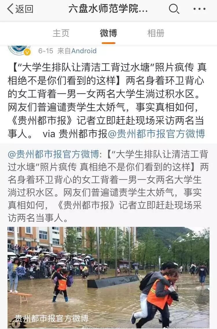 事件發(fā)生當晚,六盤(pán)水師范學(xué)院微校園轉發(fā)貴州都市報微博時(shí)正式發(fā)聲,表示真相絕不是你們看到的那樣。