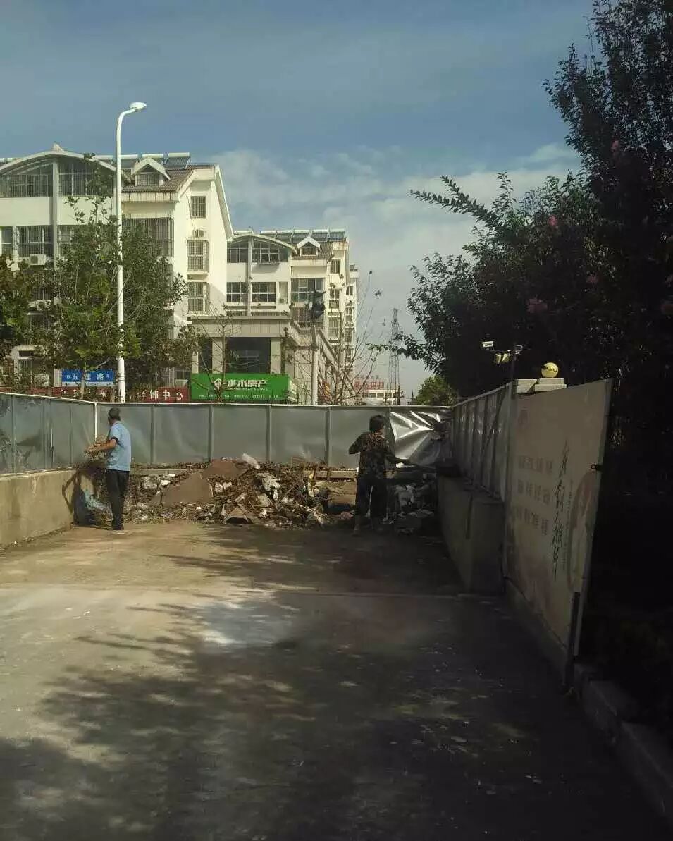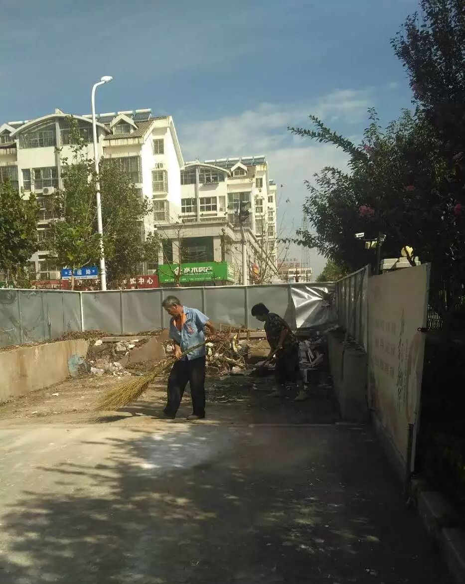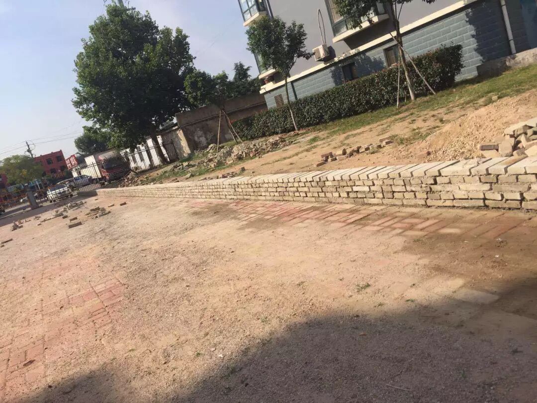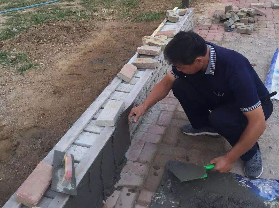 7、為了小區停車(chē)規范,避免踐踏綠化草坪,易居在西門(mén)筑起了擋車(chē)墻,保潔負責人積極配合物業(yè)完成筑建。
