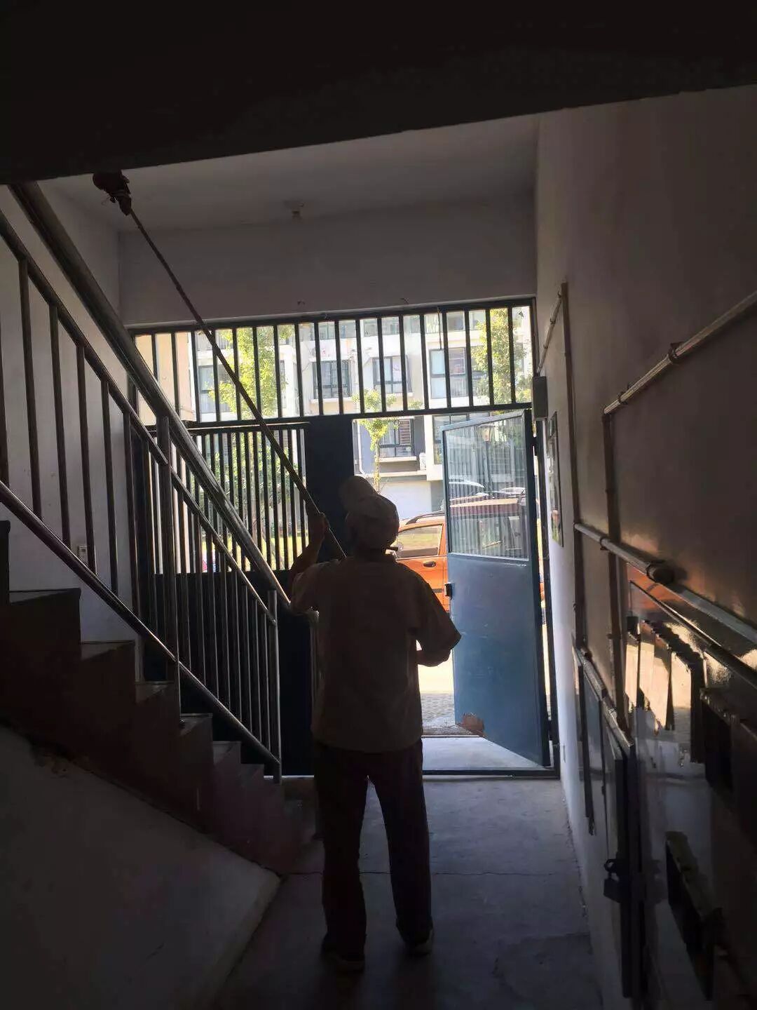 8、組織德潤福臨、易居等小區的保潔對樓宇內外以及車(chē)庫頂棚的蜘蛛網(wǎng)進(jìn)行了清理。