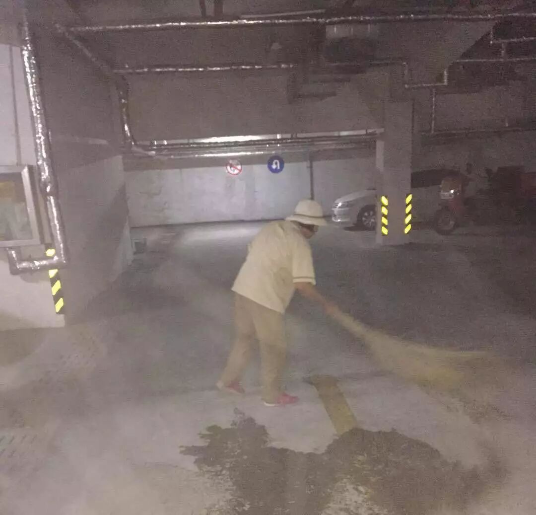 12、組織祥和園、德潤福臨、星河港灣、未來(lái)城等小區對車(chē)庫地面進(jìn)行鋸末清掃。