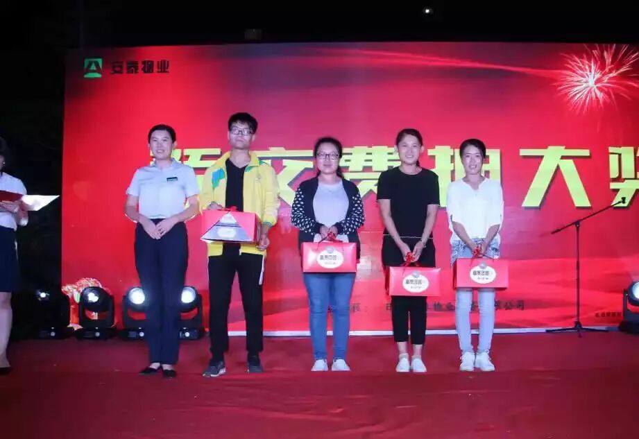 1.【情滿(mǎn)安泰,歡聚未來(lái)中秋晚會(huì )】2018年9月21日、22日晚,安泰物業(yè)分別在安泰水晶城、安泰未來(lái)城為親愛(ài)的業(yè)主們精心籌備了中秋晚會(huì )。為了感謝安泰家人們支持與厚愛(ài),晚會(huì )現場(chǎng)為安泰業(yè)主準備了預交物業(yè)費抽獎環(huán)節。安泰物業(yè)中秋晚會(huì )受到了業(yè)主們的廣泛關(guān)注和一致好評,讓安泰水晶城、安泰未來(lái)城的業(yè)主,在中秋節日中感受到家的溫暖,表現出了濃烈的家人情、鄰里情。