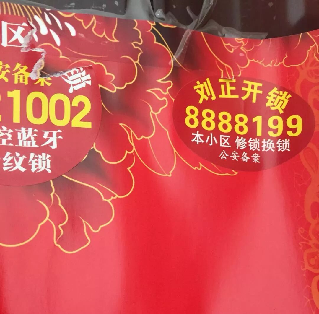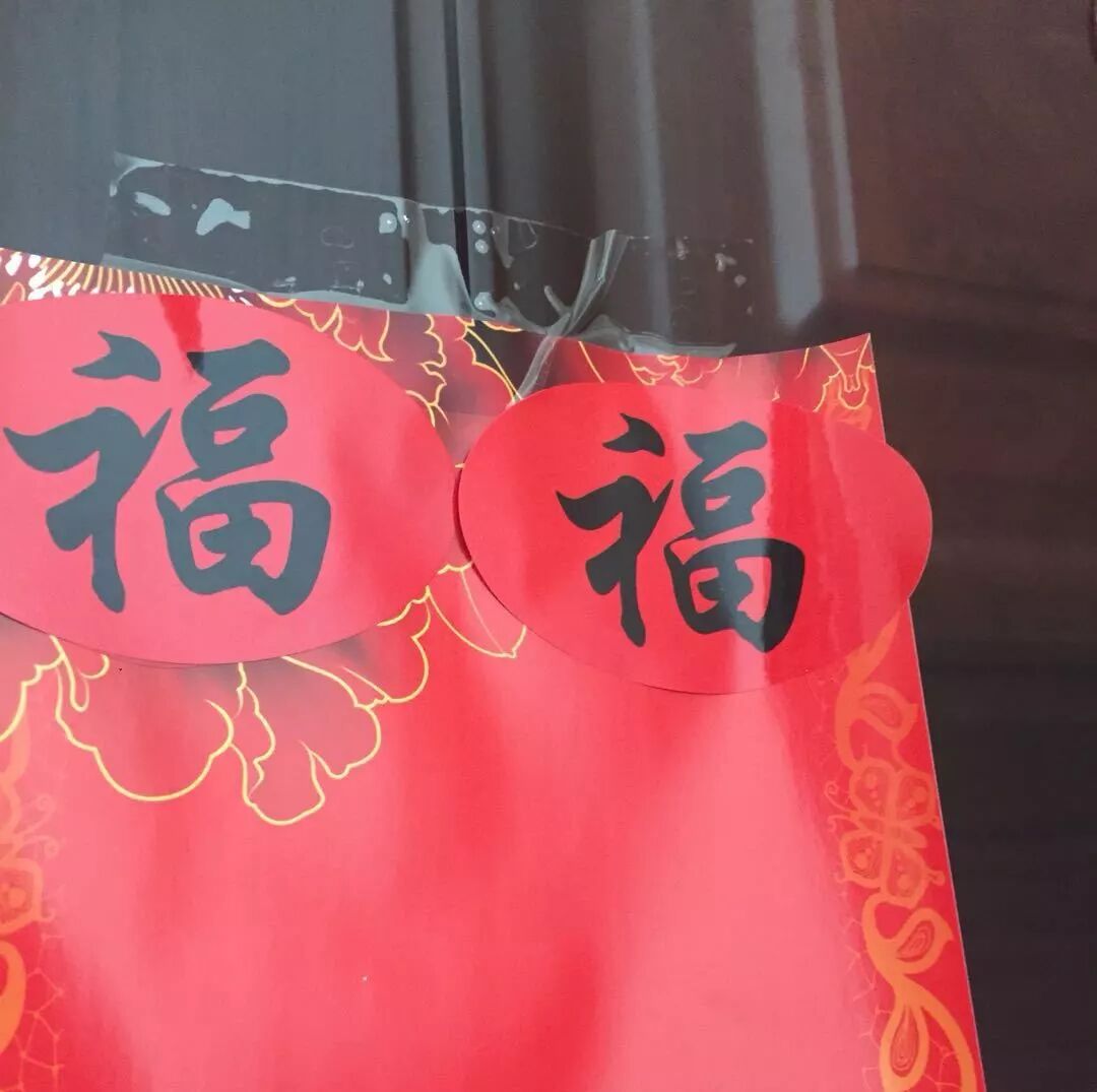 13、入戶(hù)門(mén)上小廣告可以清理,但對聯(lián)上的小廣告怎么處理,對此香河大廈保潔想到了別出心裁的辦法,就是用小小的福字蓋住小廣告,是不是很有創(chuàng )意。