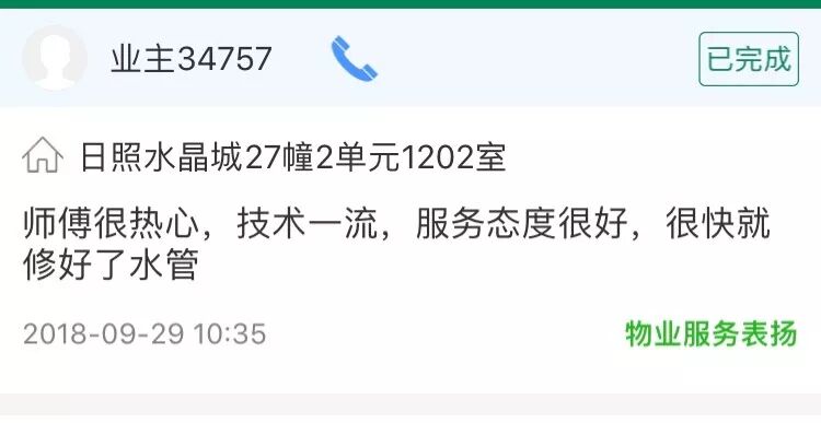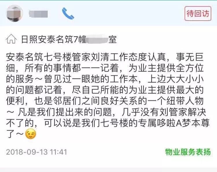 3、能得到業(yè)主們的贊揚及肯定,是做物業(yè)人的自豪,我們會(huì )更好的服務(wù)廣大業(yè)主們。