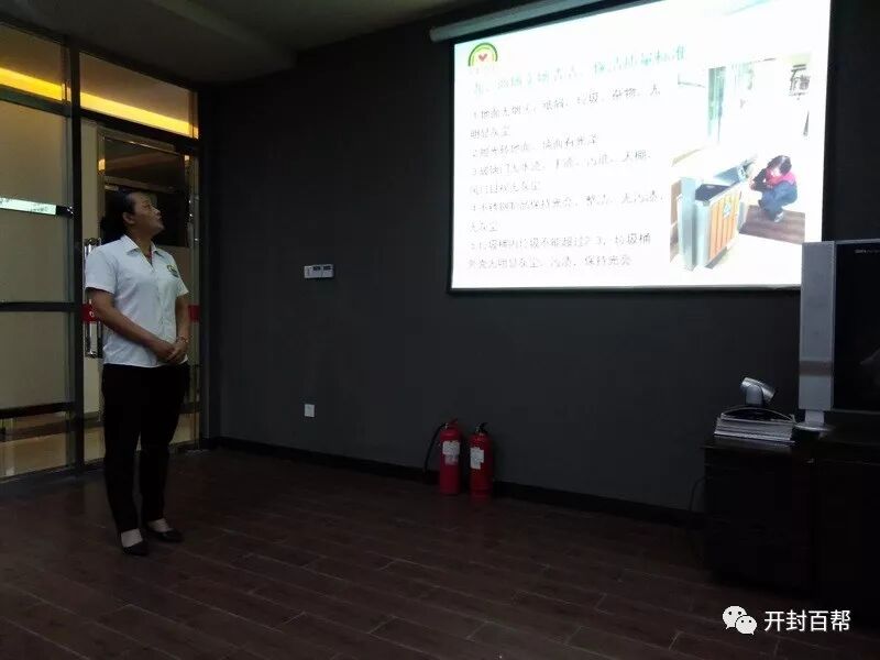 培訓采取理論培訓與實(shí)際操作培訓相結合的方式進(jìn)行。理論培訓,楊東霞老師會(huì )給保潔員帶去專(zhuān)門(mén)針對他們所服務(wù)單位的電腦投影課件,圖文并茂得給保潔員講解保潔知識;實(shí)際操作培訓,楊老師就會(huì )將保潔員集中到保潔現場(chǎng),進(jìn)行現場(chǎng)實(shí)地講解。這樣,保潔員對工作重點(diǎn)更容易領(lǐng)會(huì )和記憶。