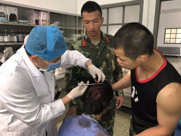 事發(fā)時(shí),正在凌波消防中隊值班室值班的一名消防官兵發(fā)現險情后,立即向中隊干部及帶班班長(cháng)報告情況,正在午休的中隊干部及兩名官兵聞?dòng)嵖焖仝s到事發(fā)現場(chǎng),找到了全身鮮血淋漓且蜷縮在路邊的老人,此時(shí)施暴人員已逃離現場(chǎng),中隊官兵立即將老人背至消防中隊值班室。劉中隊長(cháng)立即對老人的傷勢進(jìn)行了檢查,發(fā)現老人后腦勺有一處約7厘米長(cháng)的傷口,此時(shí)老人左手骨折、左眼無(wú)法睜開(kāi),嘴里滿(mǎn)是鮮血,且神志逐漸不清,劉中隊長(cháng)隨即安排一名官兵為老人進(jìn)行應急止血處理,并立即撥打110報警電話(huà)和120急救電話(huà),同時(shí)與老人的家人取得了聯(lián)系。