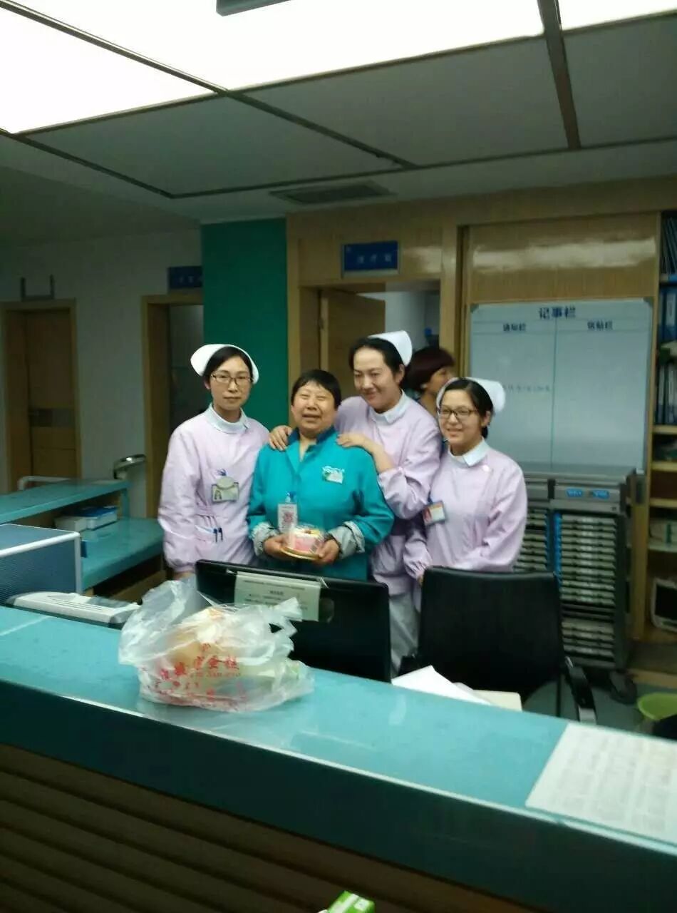 當天下午3點(diǎn),在田桂榮經(jīng)理的帶領(lǐng)導下,一路由趙玉萍、柯俊華、宋玉華領(lǐng)班推向濟民、濟安樓,另一路由王龍玉、汪麗、陸春蓮領(lǐng)班推向濟康樓,為正在崗位上忙碌的季度壽星送去了生日禮物。