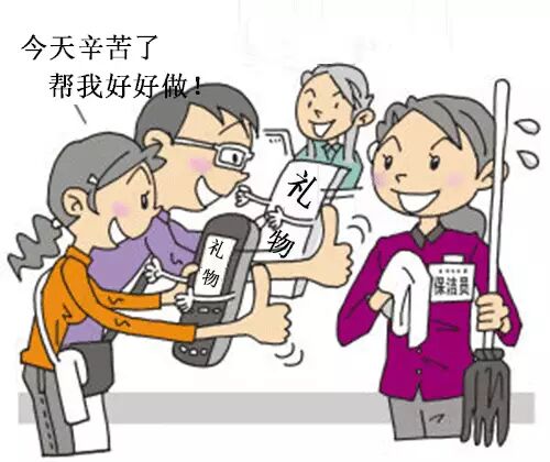 其實(shí)您無(wú)需擔心保潔員服務(wù)問(wèn)題,公司已經(jīng)建立了一套完整的監督系統及考核制度,保潔員每一次做的如何都由您來(lái)評價(jià);如果您是心疼保潔員,感覺(jué)她做得好很辛苦,那您更不用給她送東西了,這是她的工作必須要做的,和您送不送禮無(wú)關(guān)。