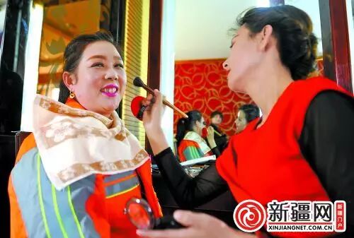 說(shuō)話(huà)間,帕提古麗·吐?tīng)栠d已經(jīng)化完妝,挽好了發(fā)髻。