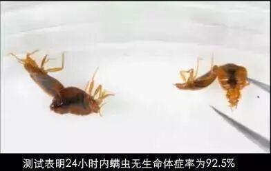 24小時(shí)內螨蟲(chóng)的死亡率為92.5%,