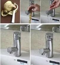 用削下來(lái)的土豆皮(肉的那一面),反復擦拭龍頭的表面,然后用清水將水龍頭清洗干凈。