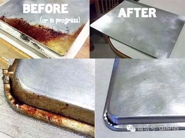 要清洗烤箱的烤盤(pán),只要用「Sol-U-Mel」的三合一去污劑和鋼絲絨海綿,就可以輕而易舉的清除污漬了!