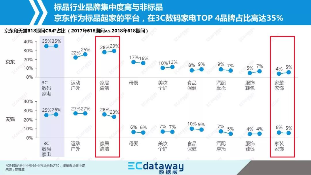 最后來(lái)看下618期間CR4*占比(*CR4指的是行業(yè)前4企業(yè)市場(chǎng)份額之和,衡量市場(chǎng)集中度):