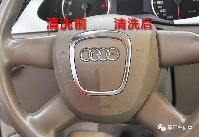 我們再來(lái)看看它清潔方向盤(pán)、橡塑膠件的效果。