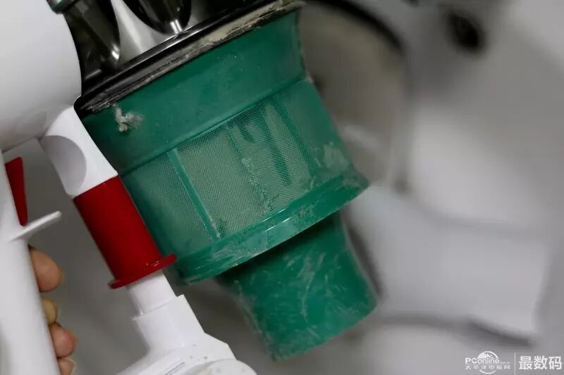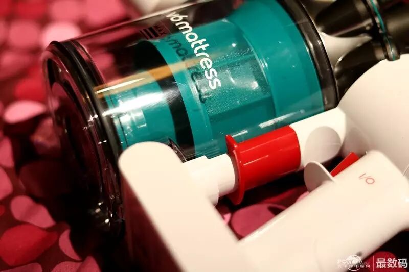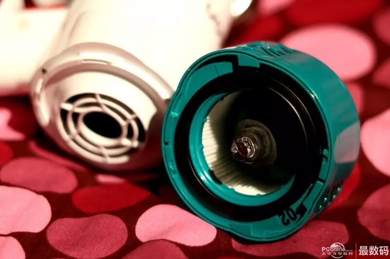 在馬達上還隱藏著(zhù)濾芯的拆卸位置,只要稍微用點(diǎn)力就能把濾芯拔出來(lái)清潔,而且可以直接用水清洗哦,清洗后晾干或者曬干就可以繼續使用,比起傳統采用塵袋設計的吸塵器,戴森V6 Mattress擁有方便的清洗能力。
