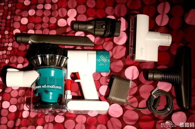 這是戴森V6 Mattress的全家福,外觀(guān)、功能都很簡(jiǎn)潔,所以配套的東西不算多,可小巧的戴森V6 Mattress只配幾個(gè)吸頭就能帶來(lái)強勁的清潔效果,更特別的是戴森V6 Mattress屬于無(wú)限操作方式,只需一個(gè)類(lèi)似手機配的充電器就可以實(shí)現很好的續航,無(wú)線(xiàn)操作的戴森V6 Mattress實(shí)在是方便。