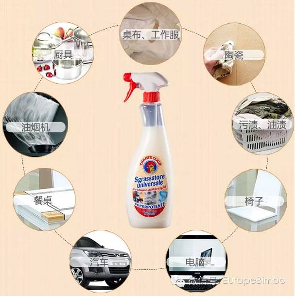 Chante Clair 多能油污凈是一款全新研發(fā)的清潔劑,憑借適用范圍廣,去污性強,在意大利已成為常用的居家清潔劑之一。