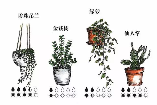 下面的圖可以更具體的看到不同種類(lèi)的植物對于光照和水分的需求量有多么不同。