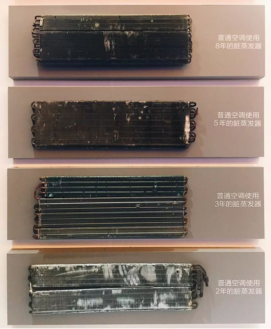 當行業(yè)中多數企業(yè)還在研究空調如何快速有效制冷制熱時(shí),海爾空調研發(fā)團隊早早將目光著(zhù)眼于空調本身的潔凈程度。發(fā)布會(huì )現場(chǎng)展示的幾塊使用年數不同的普通空調的臟蒸發(fā)器令人印象深刻,與之相對比的是,海爾自清潔空調在使用多年后,蒸發(fā)器仍光潔如初。