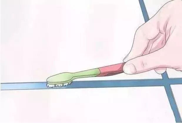 按照上述方法,逐步洗凈每條瓷磚的縫隙。涂抹清潔劑,靜置,洗刷,直至每條瓷磚縫隙都光潔如新。