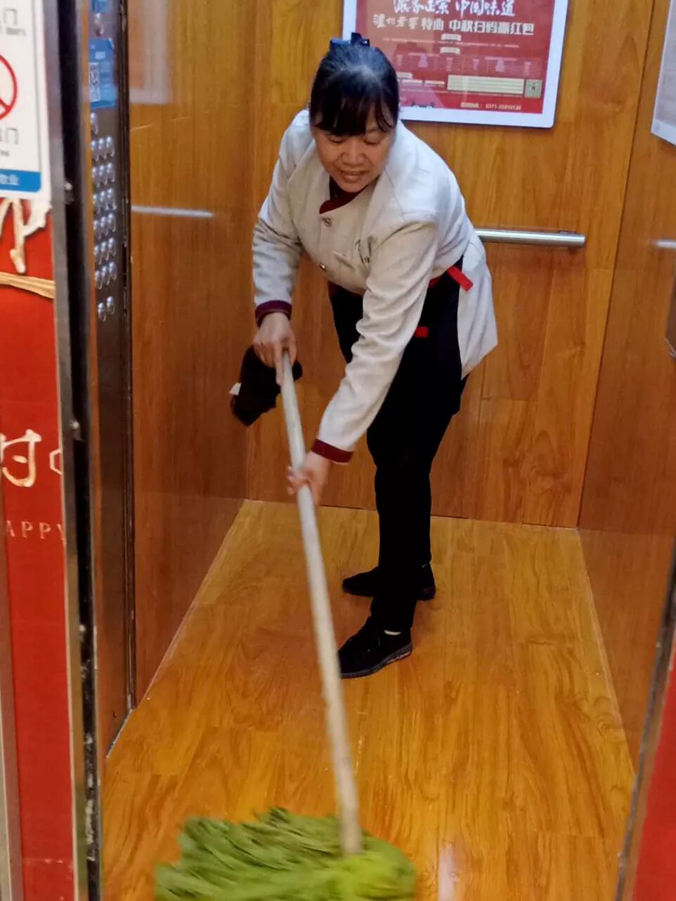 樓道、扶梯、走廊、墻角、樓梯夾線(xiàn)、只要有污垢,就有保潔的身影。