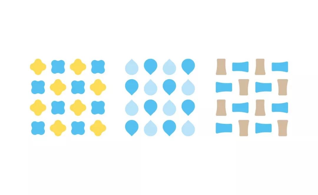 輔助圖形直接提取自logo元素,有趣的是單個(gè)圖形延展出來(lái)的圖形契合度很高,非常絲滑的融合在一起。這也是品牌想要帶給客戶(hù)的感覺(jué)吧,家居清潔就像拿肥皂洗完手一樣,有股絲滑清爽的快感。