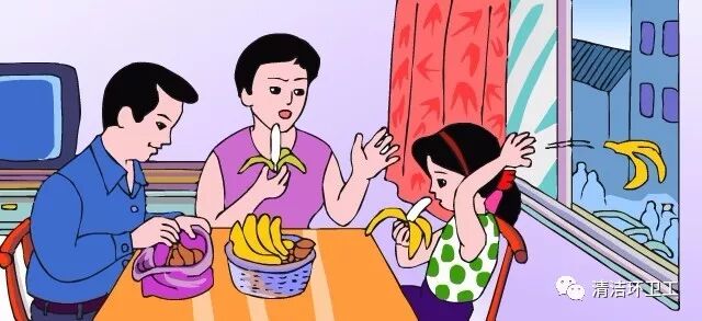 5.切不可亂扔果皮,果皮是細菌很好的寄生所,果皮的污漬也不好做衛生,甚至有滑到的危險。