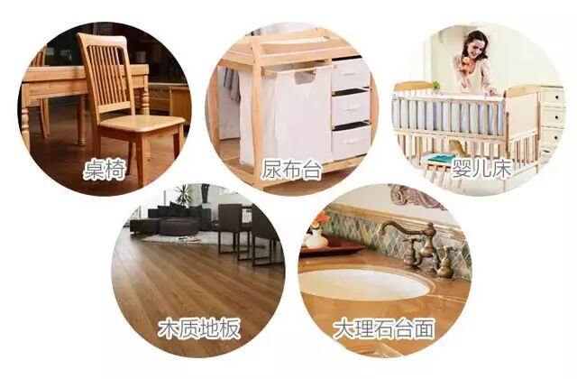 木質(zhì),石材,塑料等,如桌椅 尿布臺 嬰兒床 木質(zhì)地板 大理石臺面……