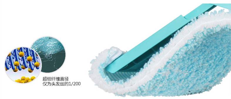 地拖布由超細纖維(僅為頭發(fā)的1/200)制成,去污力強勁的同時(shí)還能更好的呵護地板,清洗污漬也更徹底。