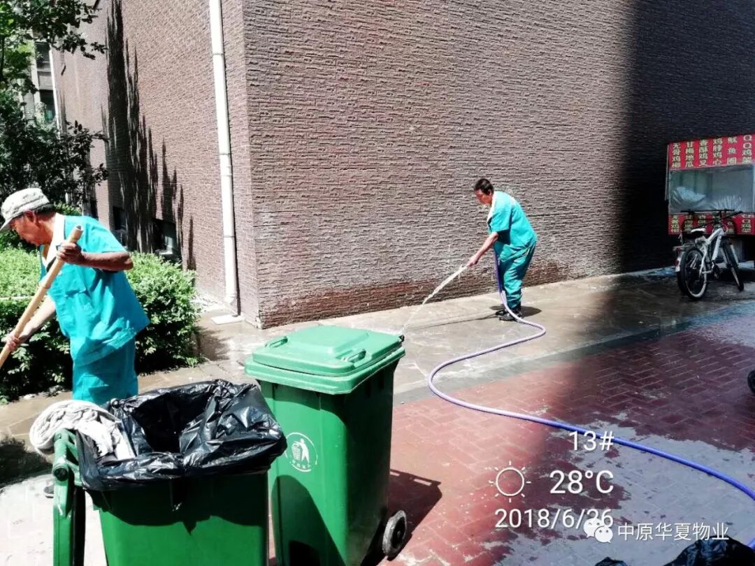 哪怕是烈日炎炎,為了給園區維持一個(gè)干凈舒適的環(huán)境,我們的天使們依然清洗垃圾桶沖刷園區地面的每一個(gè)角落!
