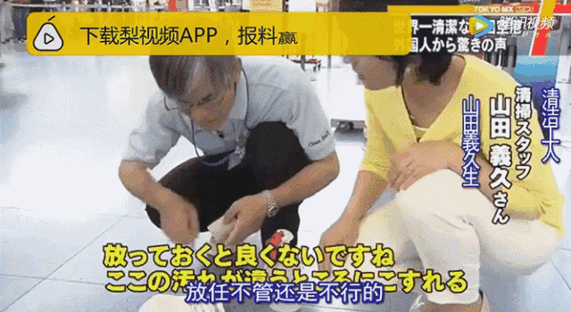 眼尖的工作人員立馬發(fā)現了地上的污垢