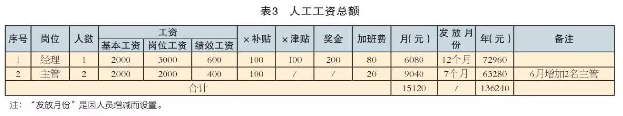 1、人工工資總額(表3)