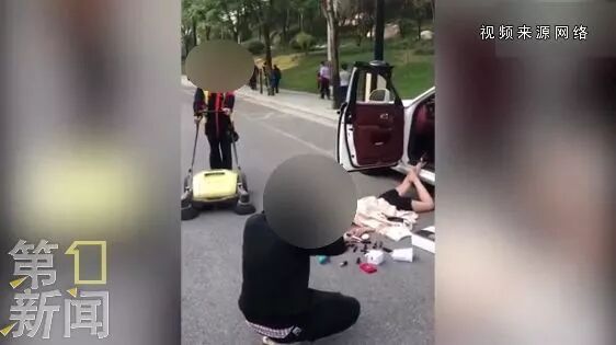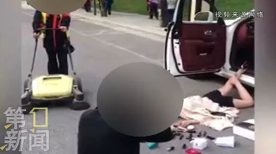 網(wǎng)上熱傳視頻中,一個(gè)女孩在馬路上做出摔倒在地的姿勢,另一名身穿黑衣服的男子拿著(zhù)相機正在為其拍照。旁邊一個(gè)環(huán)衛工人經(jīng)過(guò),說(shuō)了一句“姑娘,你東西要不要了,不要我就掃走了”。