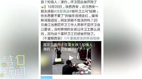 視頻剛在網(wǎng)絡(luò )上流傳時(shí),大家還覺(jué)得挺逗。但隨后幾天就有人爆料稱(chēng),這段視頻完完全全是擺拍。環(huán)衛工人說(shuō)的這句話(huà)也是對方讓他說(shuō)的,這名環(huán)衛工人因此還被開(kāi)除了???