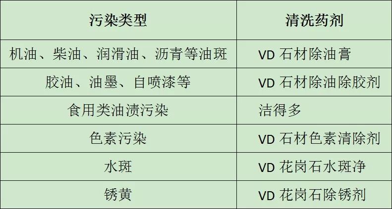 步驟三:VD花崗石清洗劑有很好的去污效果,經(jīng)過(guò)步驟二的清洗,已經(jīng)基本上能處理掉大多數污染問(wèn)題。但如果仍有污染痕跡,則和第一種一樣,再用對應的藥劑進(jìn)行敷貼處理即可。處理完,再用高壓水槍沖洗干凈。