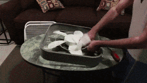 ▼擰下空調頂部的格柵板,用抹布擦拭風(fēng)扇。
