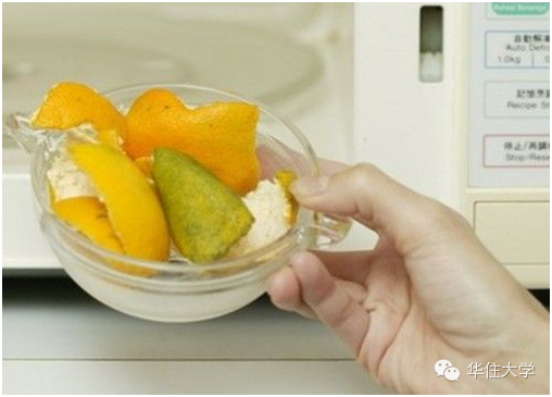 3、如果要清除涼菜間微波爐里的異味,只要將一個(gè)橘皮放進(jìn)微波爐中加熱15-30秒,微波爐里的異味便會(huì )清除掉。