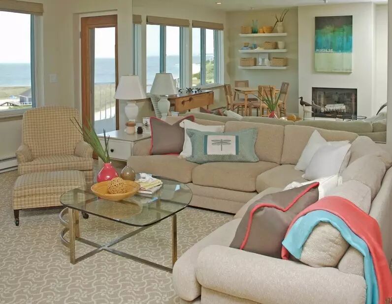 如果覺(jué)得地毯尺寸過(guò)大,不易清理,可以采用“半包圍”式的方法:地毯長(cháng)度只延伸至沙發(fā)的中部。