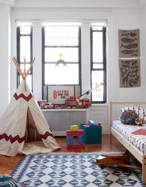 如上所述,選擇棉質(zhì)的或者碎布制成的毯子很適合兒童,舒服的觸感感覺(jué)安全可靠。建議是選擇小而多塊進(jìn)行組合,這樣做的好處顯而易見(jiàn),小塊的毯子容易清洗,扔進(jìn)洗衣機就好了!另外,這樣做視覺(jué)效果也相當活潑可愛(ài)。